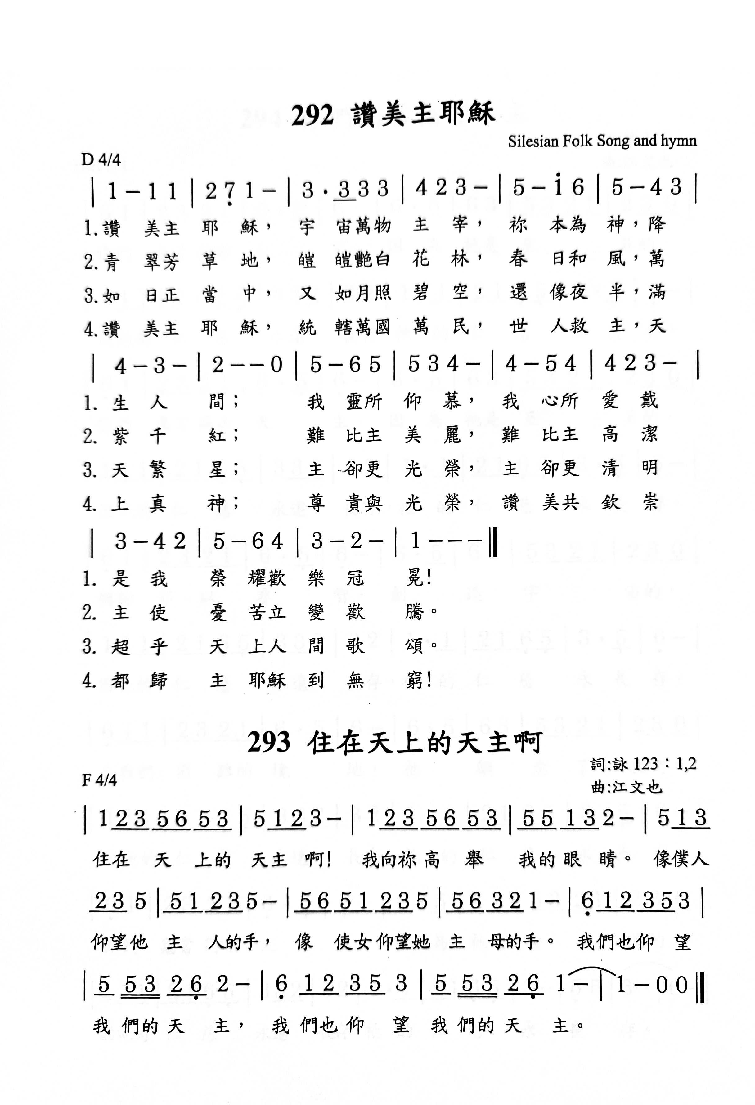 292. 讚美主耶穌 + 293. 住在天上的天主啊!