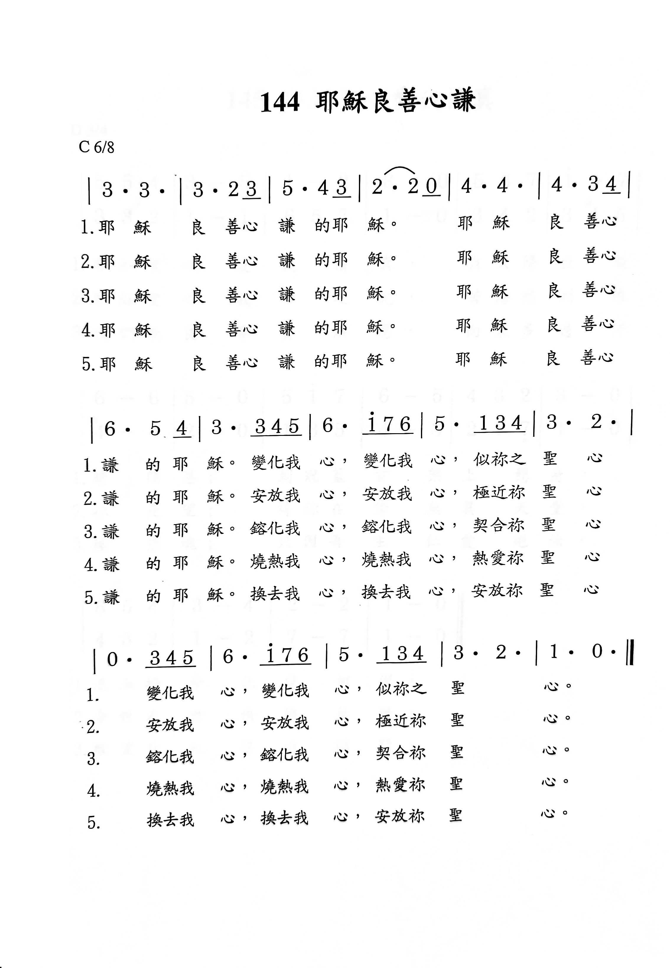 144. 耶穌良善心謙